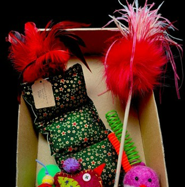 A Box full of Christmas delights for your feline friend. This fully loaded box comes with a Segmented Kicker and a large variety of other toys including a teaser of your choice.